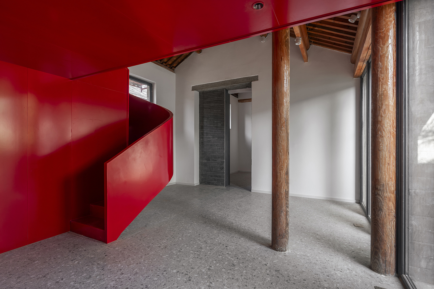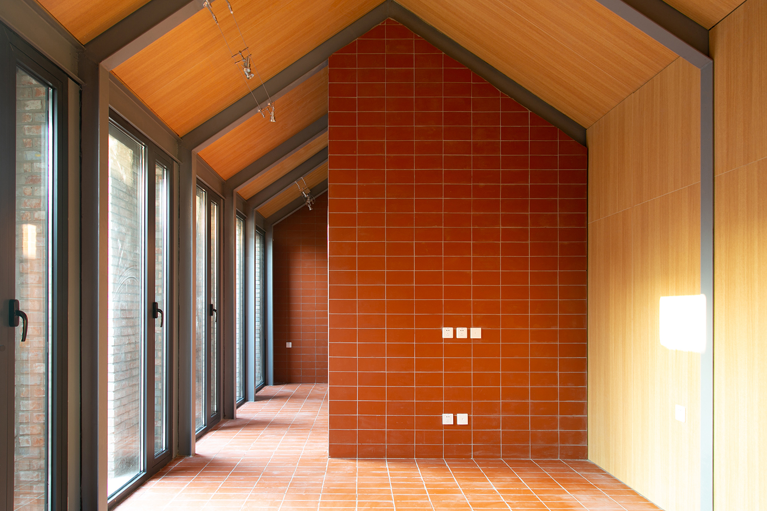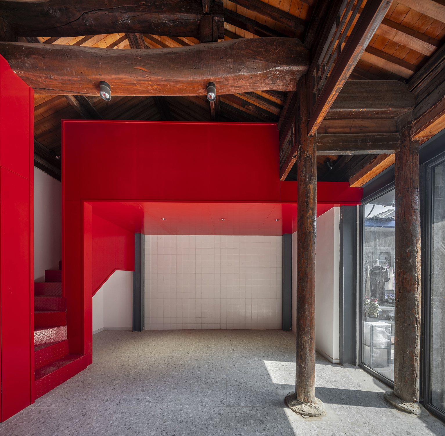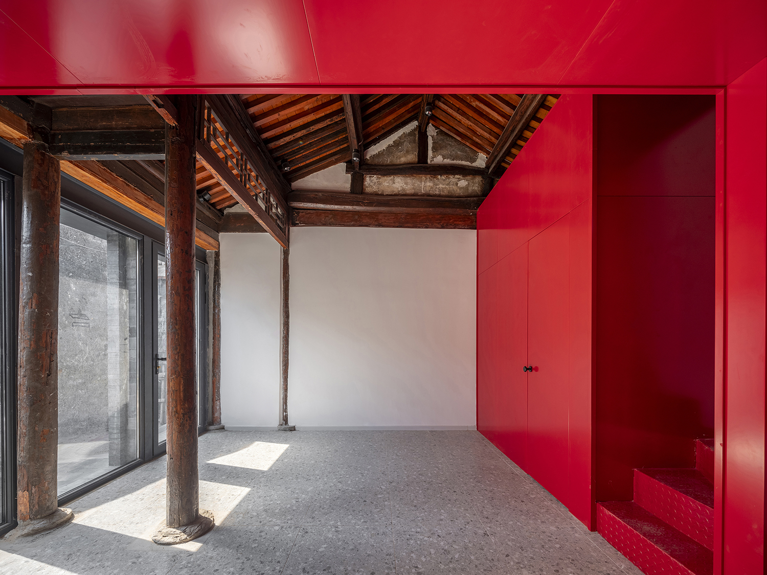 In the Tianqiao Bungalow zone, every building is uniqueness. On the premise of respecting the regulations and set principles, we propose that the way of architectural renewal is: the design should adapt to the varying conditions from house to house and from material to material. A thorough investigation and evaluation of each house is a prerequisite for renovation. The "narrow, small, low and dense" architectural space of Tianqiao's bungalow zone is not a shortcoming but an unique spatial characteristics of Tianqiao. Therefore, millimeter-scale construction and design have become the norm in daily work. Re-elevating the site to retain an old stone paving on-site became the norm. Renovations are carried out in units of "jian", taking three-jian brick houses as an example, which means that in most cases, when one or two of the jians being renovated, there are still residents living in the other jians. With limited funds, it is difficult to renovate the whole roof covering the three jians. Thus the old house was first partially repaired, and then the new architecture was inserted into the site on a minimal scale. New architectures usually look like a few floor-to-ceiling windows which are actually very small architectures compressed into the width of a wall. Therefore, this wall actually has two different facades. The south facade is made of brick and glass, and the north facade is made of steel and glass. Despite this, it provides all the basic functions of modern life, such as: water supply, electricity, heating and air conditioning, etc. It has an independent foundation and modern infrastructure, making it possible to live comfortably in a centuries-old house without having to change their modern lifestyle.