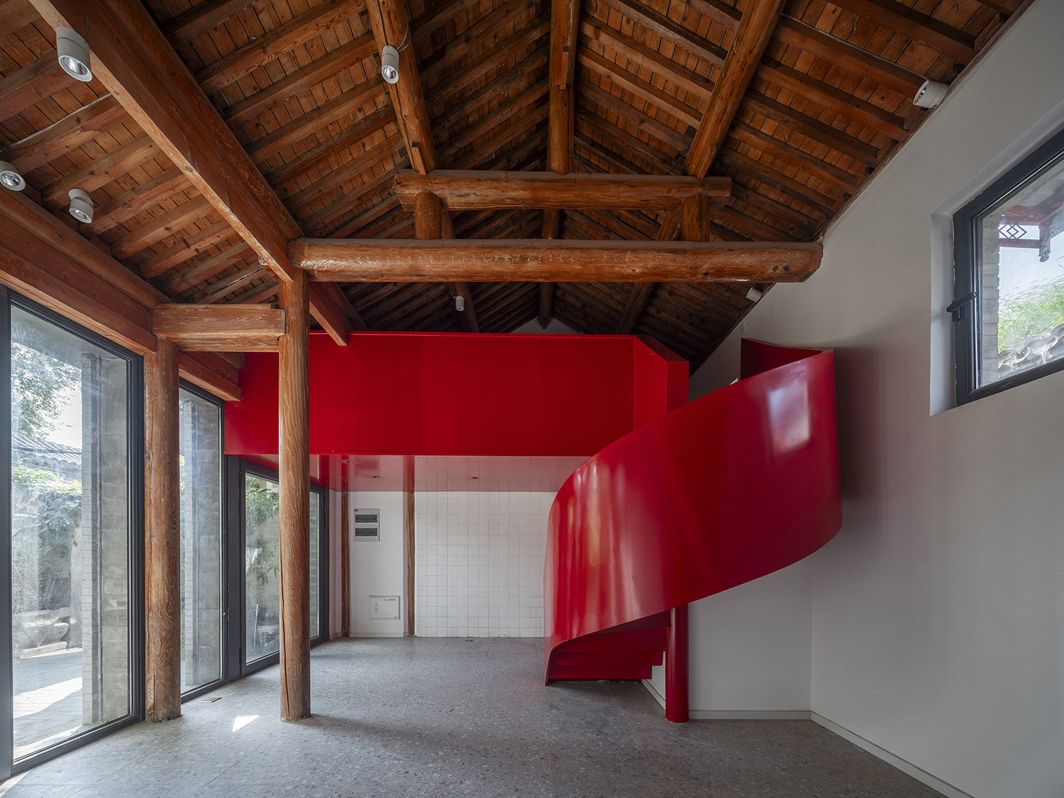 Symbiosis also has a dual meaning in Tianqiao. We call it "symbiosis of time and space", that is, the symbiosis of the past and the present, the symbiosis of the inside and the outside. The project of symbiotic apartments must first coexist with the history and culture of Tianqiao. The renewal and renovation of the Tianqiao Bungalow Zone is subject to the most stringent regulations of Beijing's Ancient Capital Style Protection Area. Therefore, the outline, height and shape of the buildings are strictly protected. In addition, the maximum protection of the authenticity of the building is the most essential proposal. The premise is that although it is not a historical relic protection building, after our architectural assessment, a protective repair method was proposed for those parts that are clearly in historical information and value, and traditional techniques were used to renovate those parts that endanger the safety of the building. The renovated parts will be distinguished from the preserved original ones in terms of material and color. Modernization is an important requirement for renewal. For the historical buildings here, we announced the two principles of minimum scale intervenes and untouchable in between of the new architecture and protected materials. The symbiosis of the past and the present here becomes a visible symbiosis of architectural history and contemporary space.