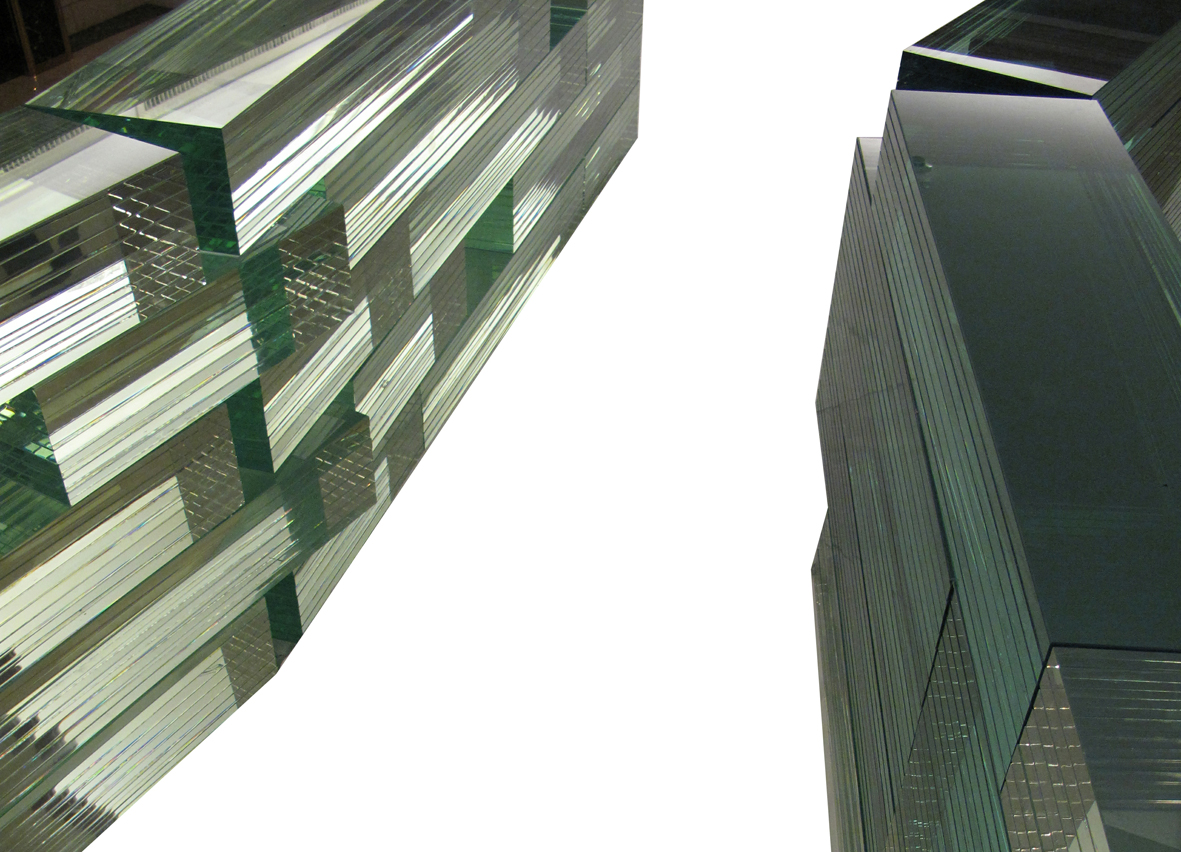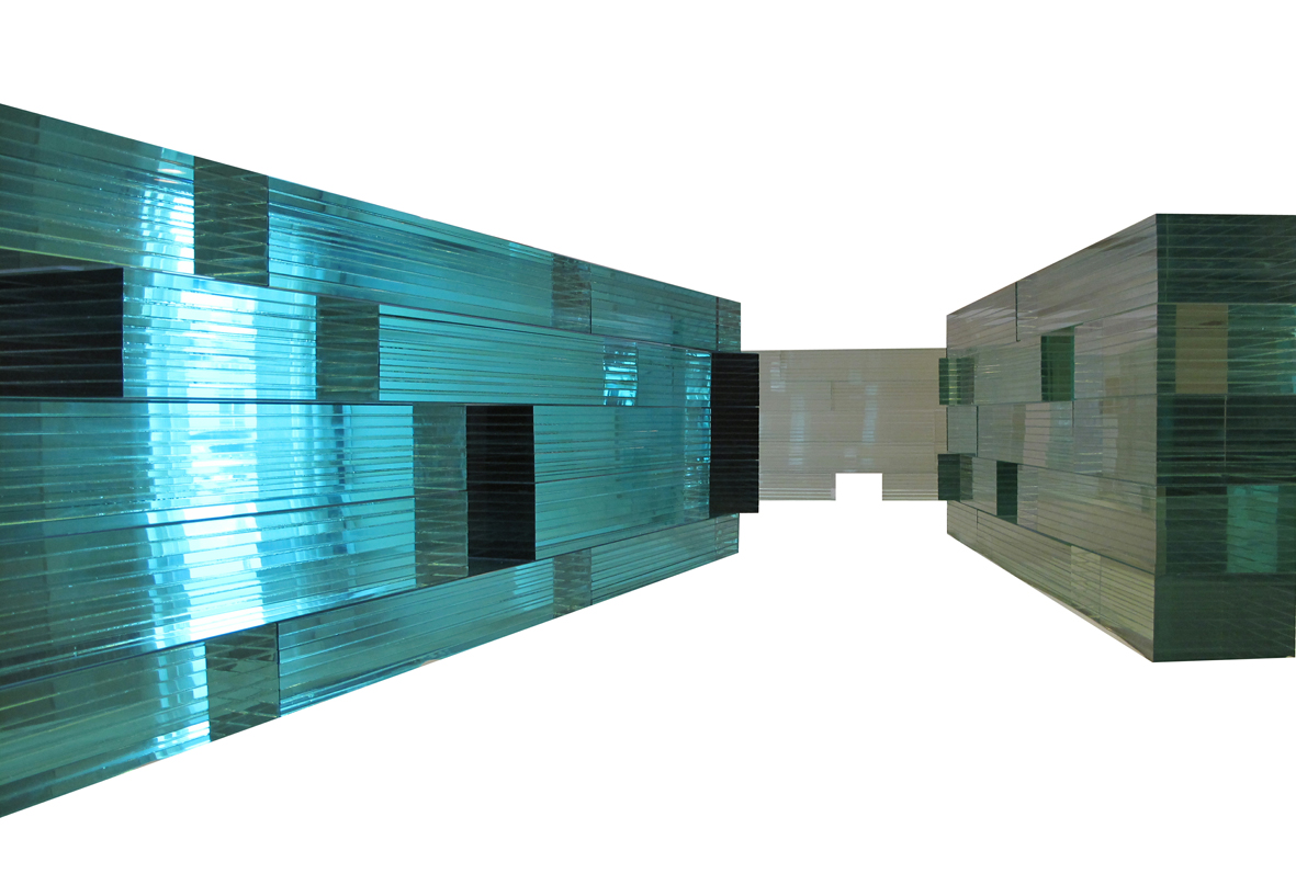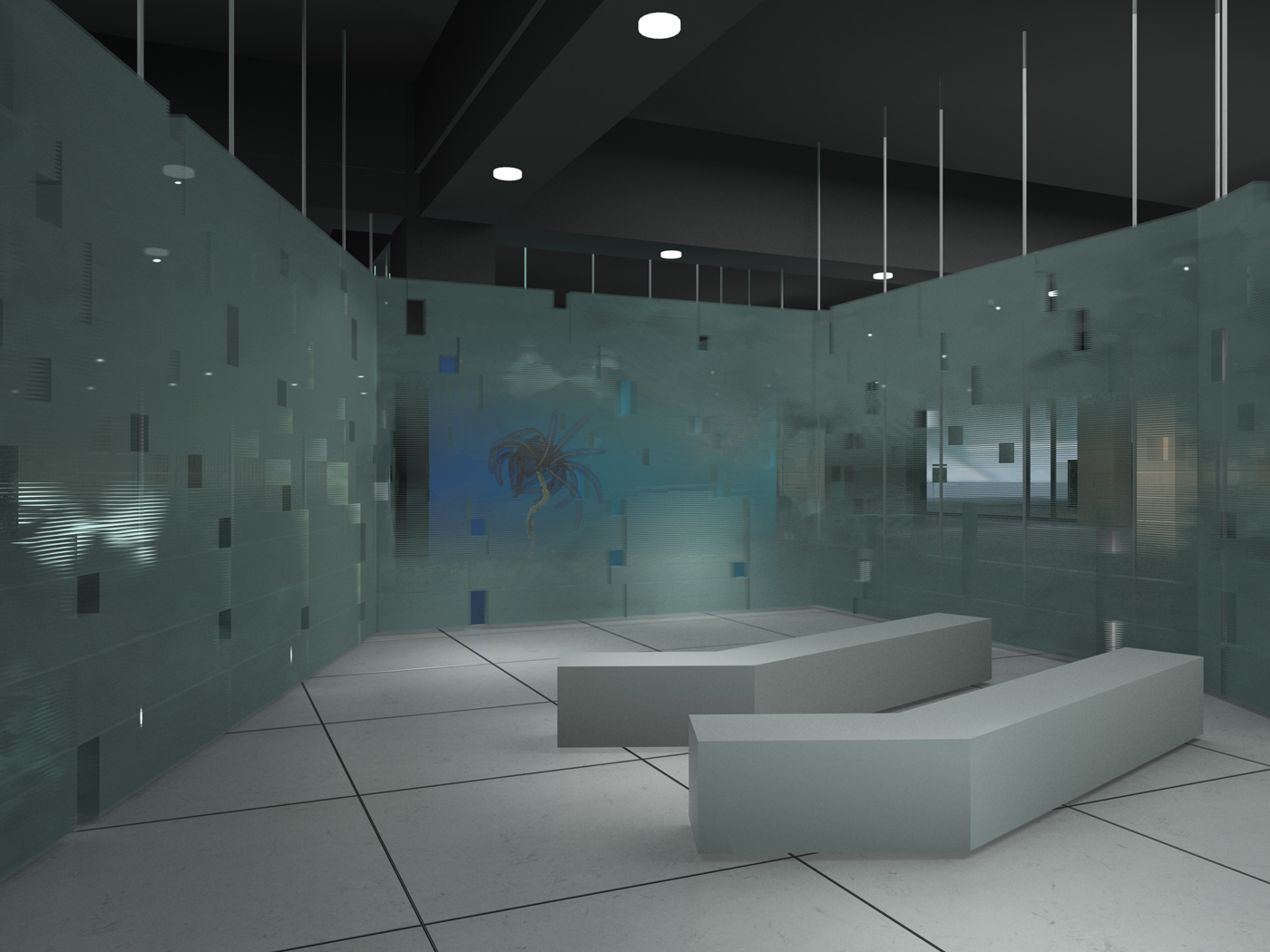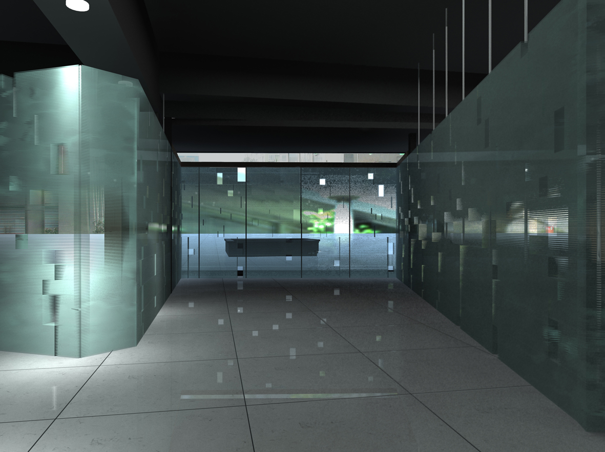 "Calligraphy of Light" is a design for the Chengdu Shitian Cafe. After the site inspection, the site conditions are limited by the large depth of the internal space, the dim lighting, the limited space height, two preserved old trees facing the street on the east, and the pedestrian public space on the west. Considering the open frame structure inside, it is necessary to make some space grids to increase the privacy and affinity in the space. In order to prevent such grids from making the darker and shorter space more oppressive, the initial idea is to build a set of structures that can adjust the light transmittance through lights, dividing the space into effective areas and strengthening the characteristics of the space to make it integrated rather than fragmented. Finally, glass was selected as the material, but its cross-sections were superimposed and fixed together. And irregular holes were left on the facade. Under the changes of multiple sets of lights, the glass wall is sometimes transparent, sometimes translucent, and sometimes opaque. The shadows and light change in the glass wall and the openings. The design of the structure focuses on connecting the landscape elements on the east and west sides and bringing these elements into the interior of the space. The glass structure is like calligraphy written in the dark with light, combining functions, scenery and light in the space. Although the project was not finally built, we made a 1:1 sample of the glass wall.