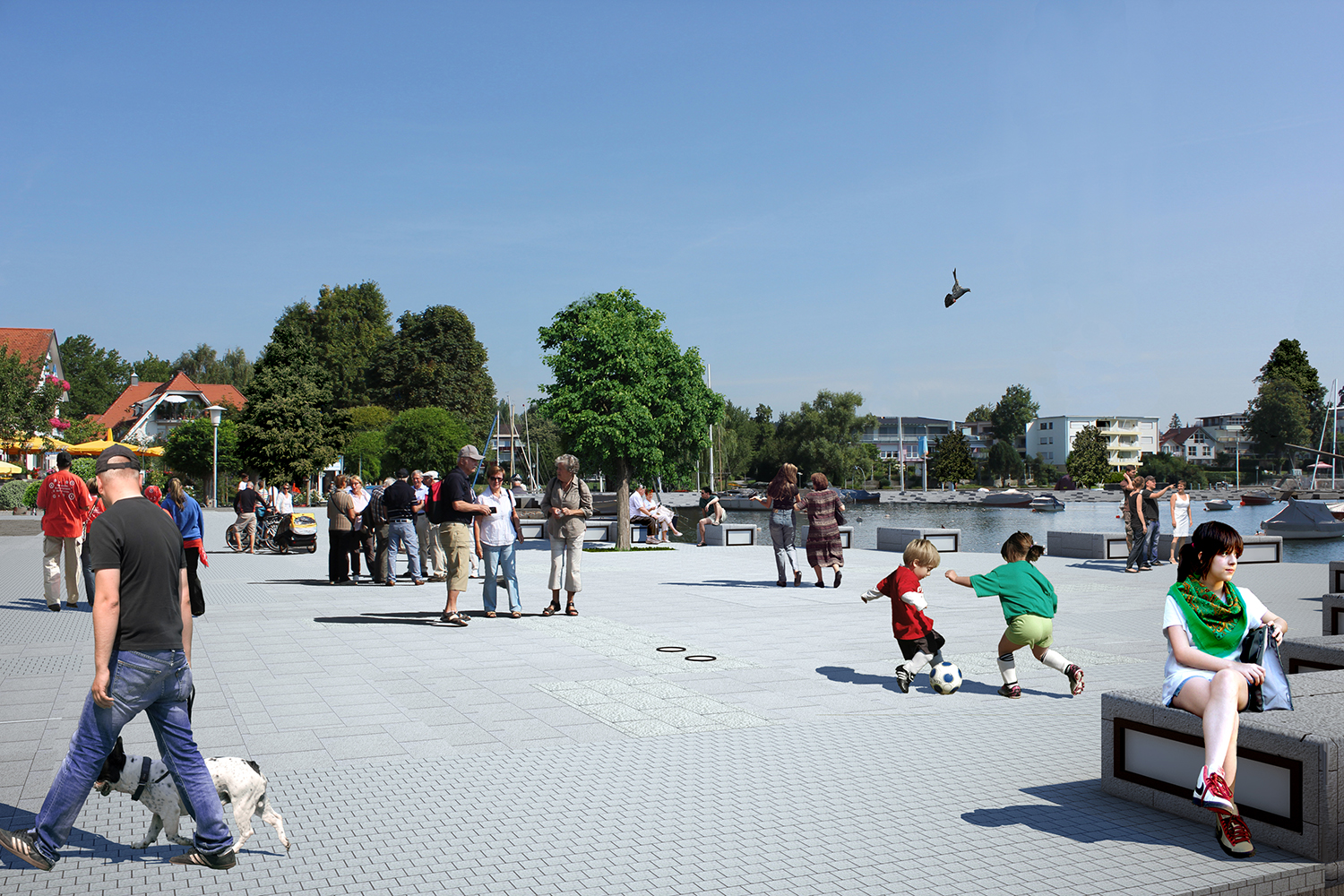 A new urban design concept gradually took shape: that is, to create a pure outdoor open space here, a pure space that is almost like an urban stage. This space presents pure emptiness, thus gaining great possibilities and placing the beautiful scenery of Lake Constance in front of us. Like the space of the universe, although this space looks empty, it is restrained by different force fields. After precise computer calculation, the flow lines and intensity ranges of different user groups are converted into three spatial categories: fast passing, performance and leisure. These three categories are then converted into six types of ground paving materials with different properties. The six types of ground paving materials are combined with the embankment design to eventually form Wasserburg's unprecedented urban dock - an empty but powerful urban space - a precisely calculated social living space. It leaves beauty to the city and the water of Lake Constance, and humility to itself.