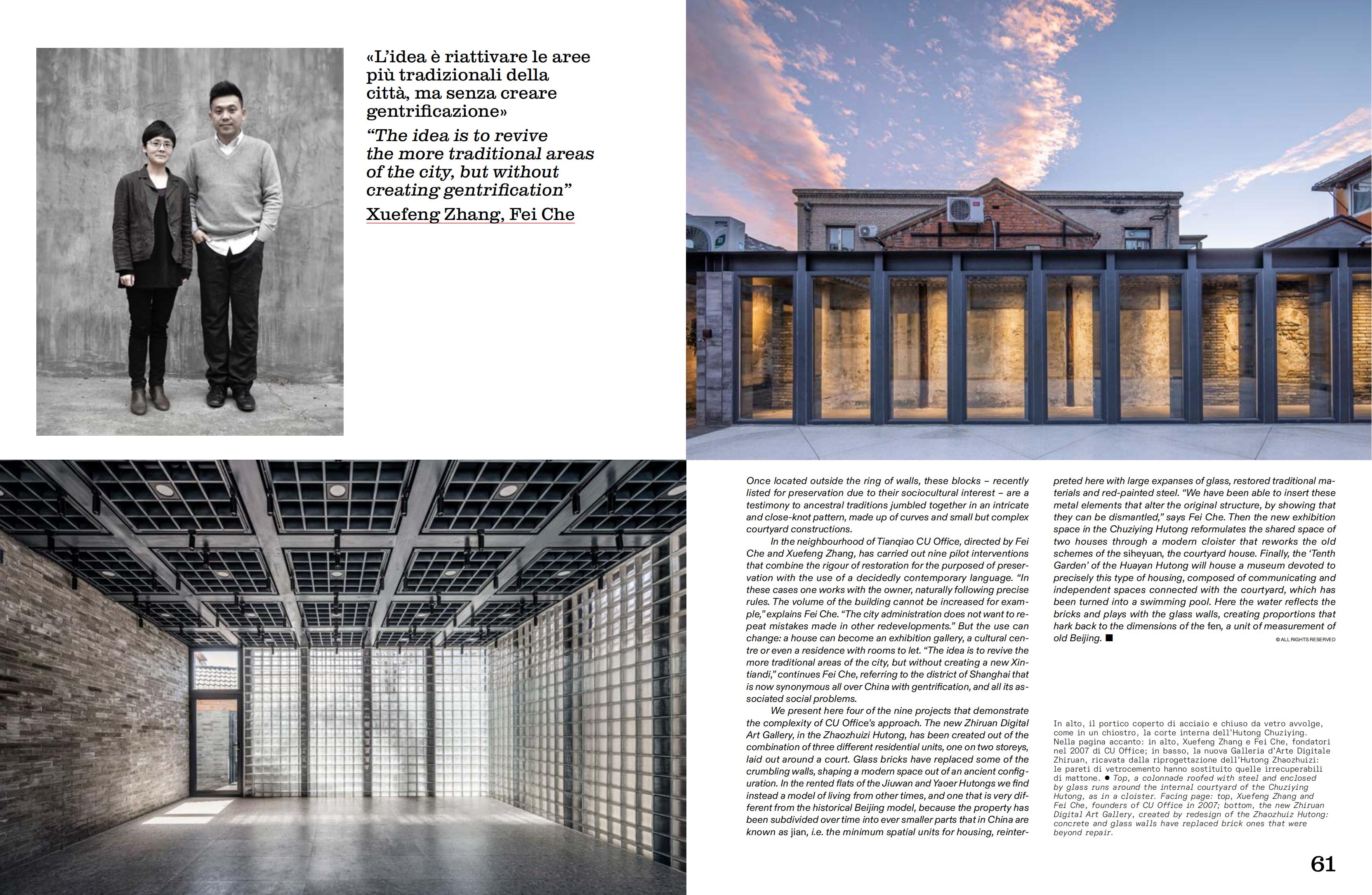 Tianqiao Hutong projects published in Italian magazine Abitare