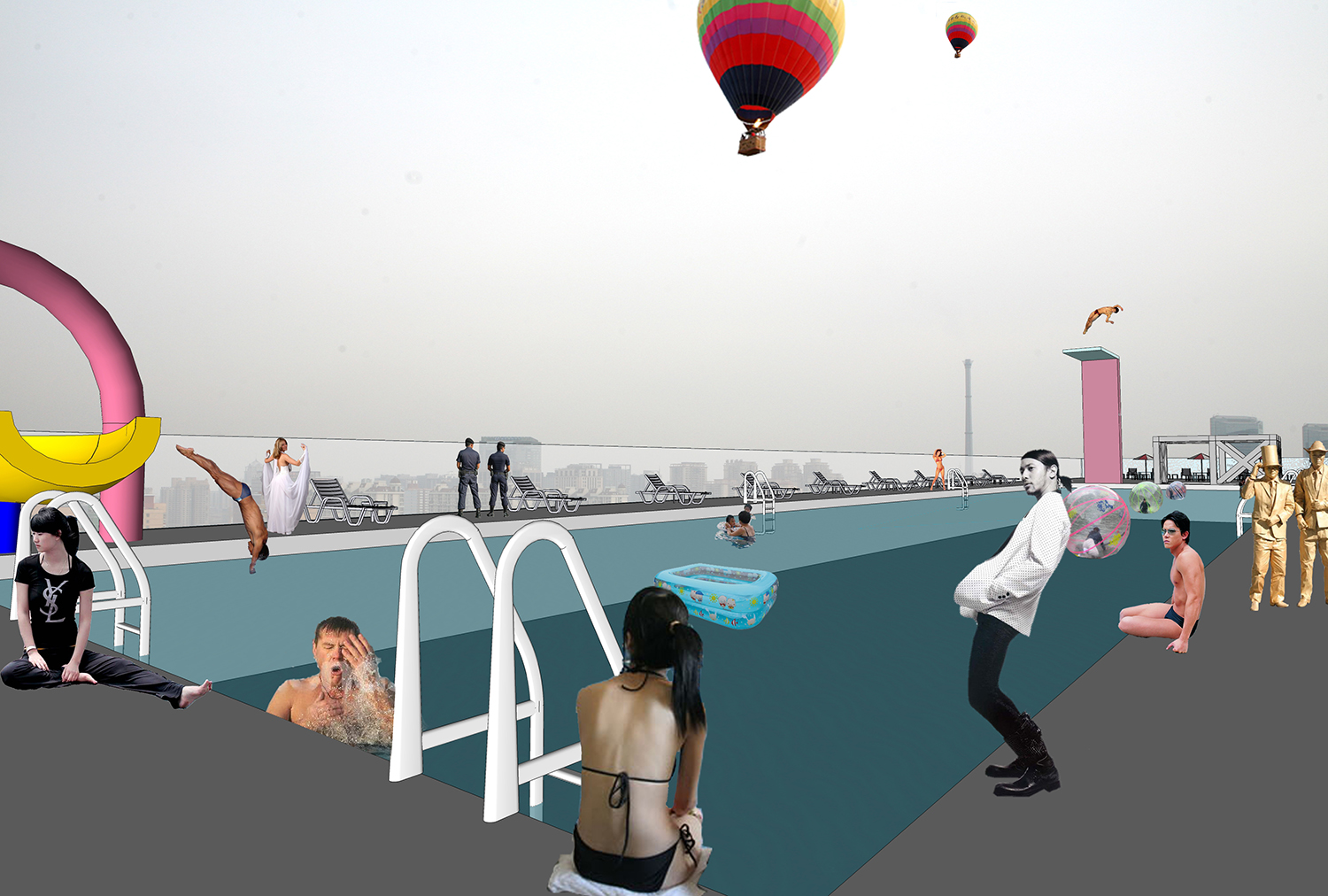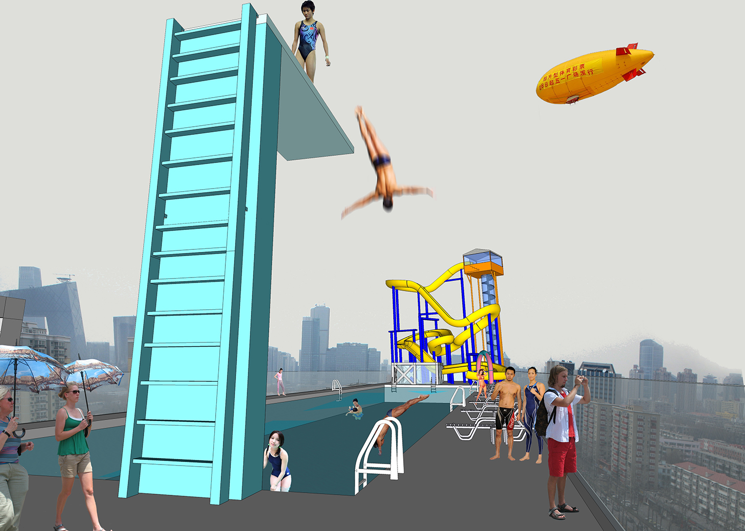 超街区 / 金街模型是车飞领导的超城建筑所做的一个关于北京旧城街区可持续性发展的研究项目。这个项目没有针对著名的北京的胡同区。而是指向很少有人关注的建于1960 -1970年代的计划经济时代的单位公房。因为这种社区与胡同区一样年久失修,但却很少有人问津。金街就是这样一条真实的街区(街名按惯例被重新命名),它因为迎奥运的街道改造而复兴。因此,在实地调研和深入分析后,我们提出了一个旧城街区的发展模型:它是政府公益投入为出发点;以居民自组织为基础;以市场商业发展为手段;政府、市民与商业三方合作取得共赢,最终在旧城社区衰退依始就努力使其恢复到可持续发展的轨道上。超城建筑依此模型为金街高层集合住宅提出了可持续发展的新思——高层市场,将单一的居住单元转变为一个开放的商铺与居住的混合体,实现一定程度的经济体。同时我们呼吁国家建立一个社区发展拨款计划,已实施类似的城市项目,以利于中国城市与社会的可持续发展。