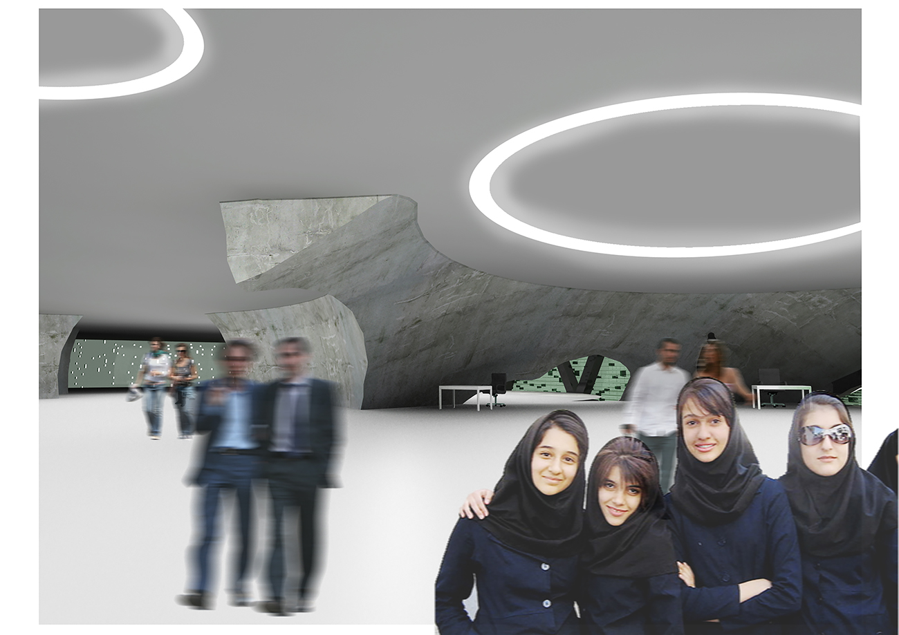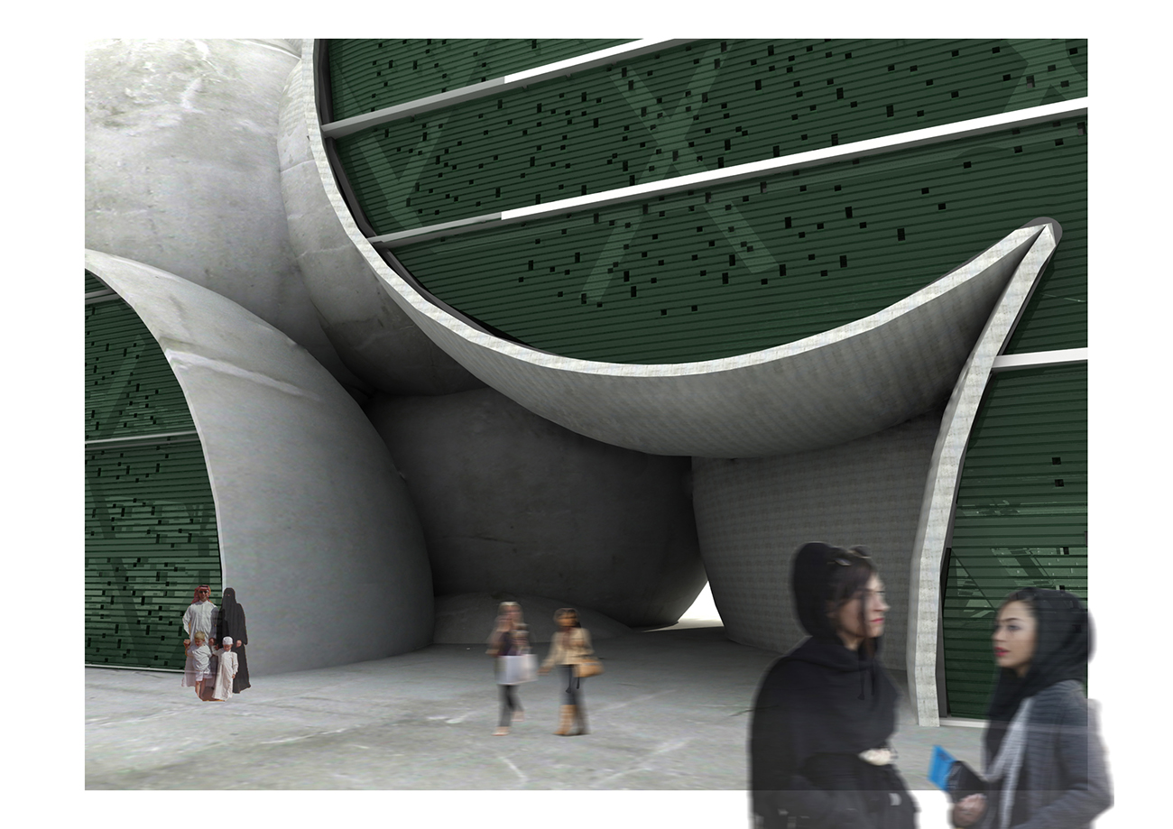 Shell structure, as a traditional construction way, has been used widely in Middle East till today. Big space, deep span, and full of imaginations become the aim created by the structure. In this proposal, complicated gridding steel frame were covered by the polished concrete.