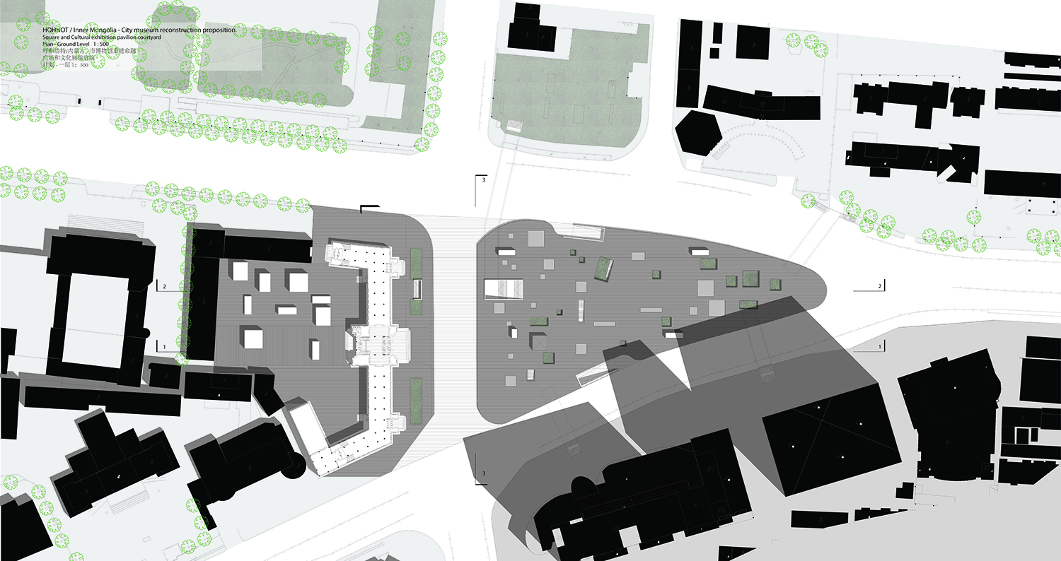 According to the analysis of the site, the main problems focus on: [1] the museum as a landmark is not obvious, as being the core of the inner city facing to Xinhua Street, the sight of the museum has been blocked by trees, unable to become an urban visual focus; [2] the square in front of the museum being surrounded by urban main roads cannot play the role of a square for pedestrians but becomes a traffic roundabout; it lacks open space in front of the main entrance to the museum, parking places for the surrounding high-rise buildings, proper functions for city life, that makes the area’s lack of attraction, traffic congestion, and ultimately the city gate becoming into the city cecum.