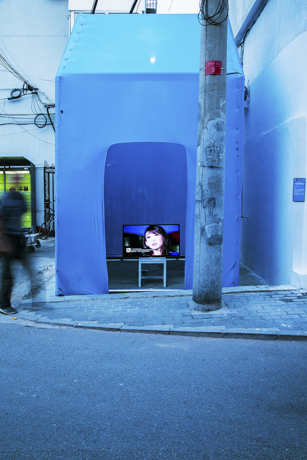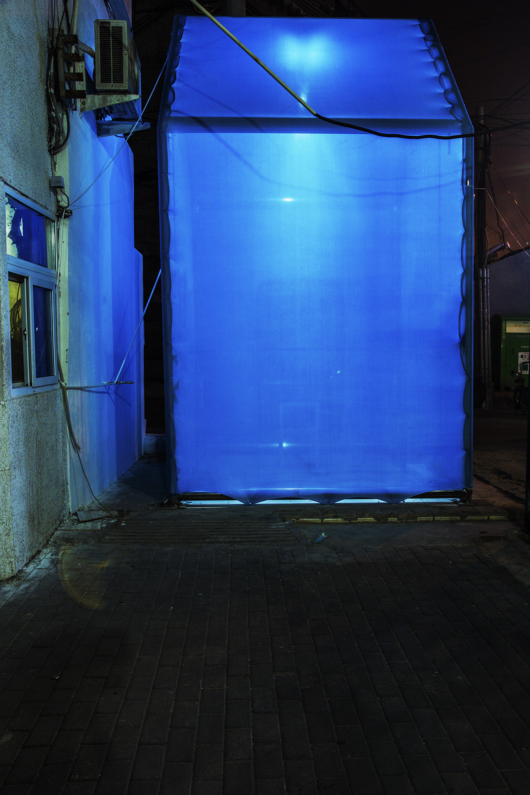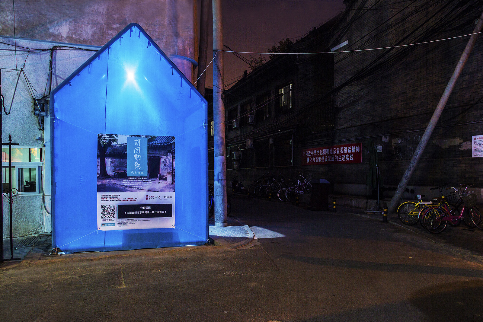 The branch road of Zangjingguan Hutong in Qinglong Hutong District is a dead end. We set up a symbolic entrance and exit at the junction of this Hutong and Zangjingguan Hutong, which not only separates the inward neighborhood space from outward public space of the hutong, but also strengthens the spatial identity of the inner space of the hutong. This sense of identity will gradually enhance the communication and common life between Hutong neighbours. People will gradually come out of their rooms to kick shuttlecocks and eat fried sauce noodles together in Hutong. This design does not require a lot of capital investment, but stimulates people's enthusiasm to improve and maintain the environment independently. Therefore, hutong is not any longer an impression here but a positive way of life. It not only restores the dead hutong, the branch of Zangjingguan Hutong, to an open space of the neighborhood, but makes the main road of Zangjingguan Hutong full of public characteristics. A group of red fabrics and steel frames form the environmental architecture, which originates from the structural morphological analysis of the space and its environment-programme rather than from a shape. Its architectural form is materialized by its environment-programme. With the end of Beijing Design Week 2016, the red fabric was removed, leaving only an abstract steel frame, but its significance did not disappear. People here can dress it up again in various ways, such as hanging lanterns during festivals. Thanks to it, people encounter in urban public space and interact in the neighborhood.