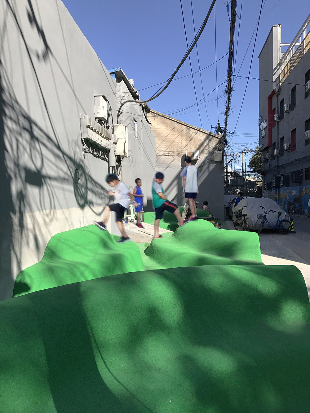 This location, next to the school, is a rare public open space in the Zangjingguan hutong. It is a gathering space for white-collar workers, tourists, parents who pick up and drop off children, and is also a space for local residents to interact. The plane form looks like a spring, so it is also a place of gratitude. It is a space for the government to give back to local residents, improve their quality of life and improve their living conditions. It is also a space for students to be grateful to their parents and teachers.